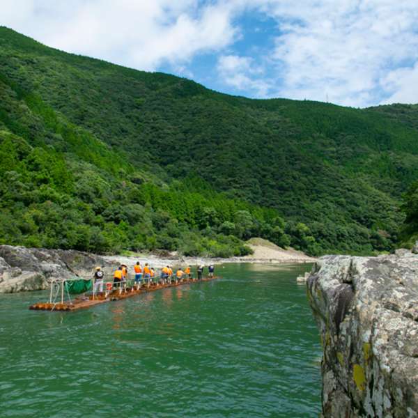O rafting é um esporte praticado em corredeiras usando um bote inflável, mas na região de Wakayama ele é um pouco diferente. Os visitantes descem as corredeiras do Rio Kitayama em cima de uma jangada construída com troncos e ficam em pé nela durante o trajeto!
