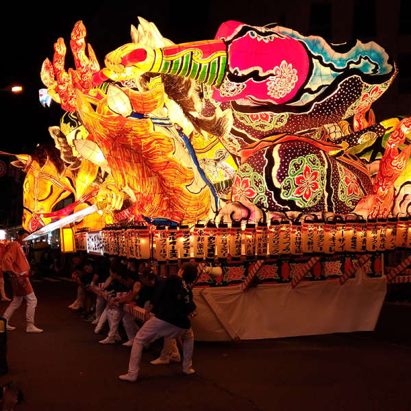 As origens do Festival Nebuta de Aomori não são conhecidas com exatidão, mas podem ser ligadas a uma celebração chinesa associada a pedidos escritos em tiras de papel. Essa tradição teria se unido a costumes regionais japoneses, dando origem ao festival. A principal atração são enormes lanternas iluminadas chamadas nebuta, que retratam figuras humanas inspiradas em guerreiros antigos, personagens históricos ou do kabuki, um teatro japonês marcado por maquiagem exagerada e gestos dramáticos. Esses carros alegóricos desfilam pelas ruas acompanhados por dançarinos que saltam e giram animadamente ao som das bandas compostas por tambores, flautas e pratos. O festival inclui desfiles noturnos, versões infantis e uma procissão marítima com fogos de artifício.