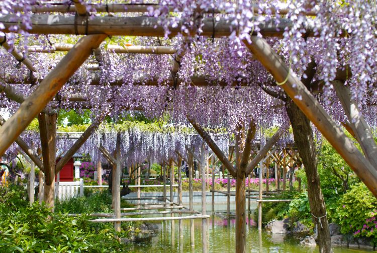 วิสเทอเรียที่ห้อยระย้าที่คาเมโดเต็นจิง