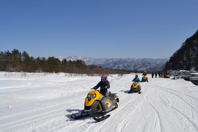 ลานขับรถสโนว์โมบิลใช้พื้นที่ลานสกี Hakuba 47 วิ่งไปบนหิมะตามเส้นทางเรียบแม่น้ำ ผ่านป่า ชมวิวทิวทัศน์อันงดงาม แม้แต่เด็กก็สามารถร่วมสนุกได้ เพราะมีไกด์ผู้เชี่ยวชาญคอยช่วยเหลือดูแลตลอดการทำกิจกรรม