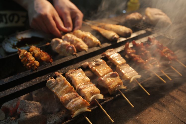 ยากิโตริ — ไก่เสียบไม้ซึ่งปิ้งย่างบนเปลวไฟ