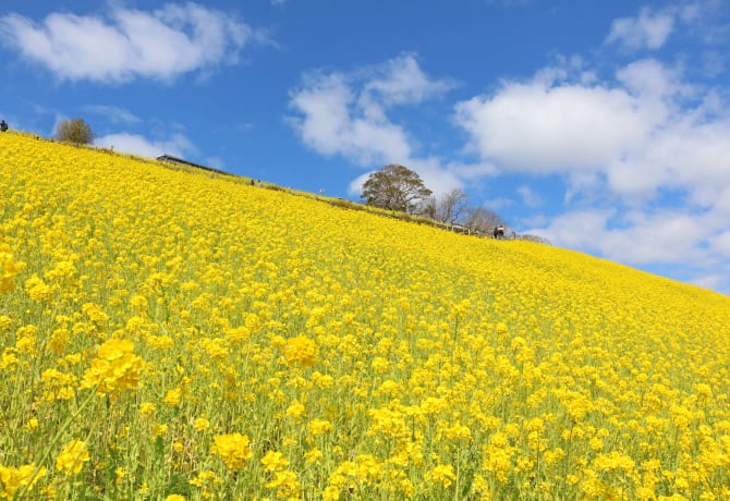 หลังจากปีนเขาสักชั่วโมงสองชั่วโมง ให้ลองไปพักฟื้นกำลังในบ่อน้ำพุร้อนอุมิเบะโนะยูซึ่งอยู่ออกไปทางเหนือของภูเขา 15 นาทีโดยการขับรถ อนเซ็นในที่ร่มและอนเซ็นกลางแจ้งตามแนวชาวฝั่งต่างมีอ่างอาบน้ำกลางแจ้งที่สามารถมองเห็นมหาสมุทรได้อย่างกว้างขวาง