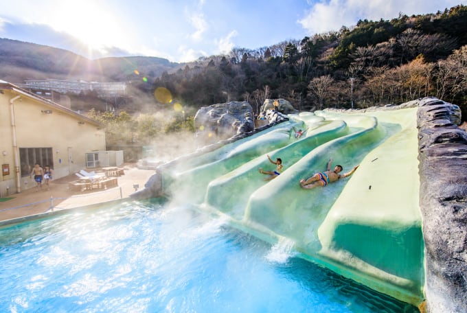 เริ่มทัวร์บ่อน้ำพุร้อนต่าง ๆ ที่มีเอกลักษณ์ของฮาโกเนะโดยการเยี่ยมชม ฮาโกเนะ โควะคิเอน ยูเนซัน สวนสนุกบ่อน้ำพุร้อนนี้จะมีอ่างชาเขียว อ่างไวน์แดง และอ่างกาแฟซึ่งมีที่นี่ที่เดียว นอกจากสไลด์เดอร์ให้สนุกกันแล้ว ที่นี่ยังมีอ่างอาบน้ำดั้งเดิมที่ผ่อนคลายด้วย