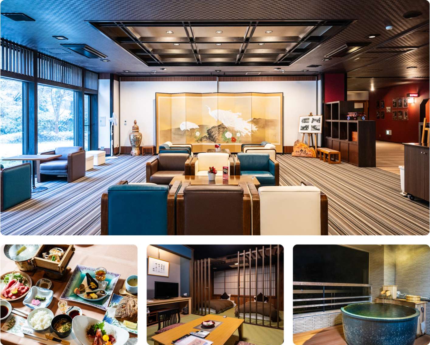 มีห้องพักหลากหลายประเภท รวมถึงห้องแบบญี่ปุ่นดั้งเดิม และห้องที่มีบ่ออนเซ็นส่วนตัว ให้ความเป็นส่วนตัว และสะดวกสบาย รวมถึงยังมีบ่อน้ำร้อนในร่ม และบ่อกลางแจ้งที่สามารถชมวิวสวนสวย และธรรมชาติรอบๆ ได้
