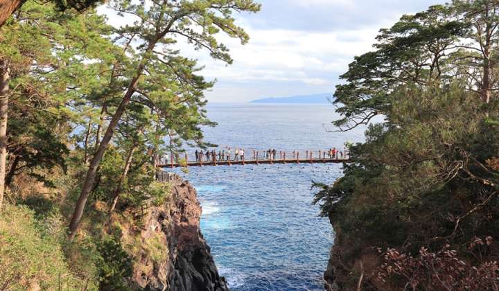 ชายฝั่งโจงะซะกิ (Jogasaki Coast) เกิดจากการระเบิดของภูเขาไฟโอมุโระ (Mt. Omuro) เมื่อราว 4,000 ปีก่อน เป็นชายฝั่งที่ตั้งอยู่ห่างจากเมืองอิโต (Ito) ไปทางทิศใต้ประมาณ 10 กิโลเมตร จัดเป็นแหล่งท่องเที่ยวเชิงธรรมชาติที่มีความยาวกว่า 9 กิโลเมตร เหมาะสำหรับผู้ที่หลงใหลในกิจกรรมท้าทาย เพราะมีเส้นทางเดินป่าให้เลือกหลากหลายเส้นทาง และสามารถเดินไปยังบริเวณแหลมที่ยื่นออกไปในทะเล ซึ่งถือเป็นจุดเด่นให้ได้เดินไปถ่ายรูป นั่งเล่น หรือตกปลา เพียงแต่ต้องใช้ความระมัดระวังเนื่องจากบริเวณนั้นเป็นพื้นที่เปิดตามธรรมชาติ ไม่มีที่กั้น จุดเด่นอีกแห่งหนึ่งของที่นี่คือ สะพานแขวนคะโดะวะกิ (Kadowaki Suspension Bridge) อยู่เหนือทะเลขนาดความสูง 23 เมตร ความยาวของสะพาน 48 เมตร ที่ทำหน้าที่เชื่อมระหว่างแนวชายฝั่งที่ยื่นออกไปในทะเล เป็นจุดที่สามารถชมวิวทะเลสวยๆ ในวันที่ฟ้าเปิดอากาศสดใสอีกด้วย