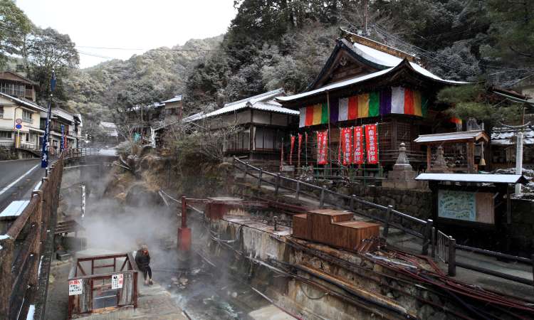 หมู่บ้านน้ำพุร้อนเก่าแก่ที่สุดแห่งหนึ่งของญี่ปุ่นที่มีประวัติศาสตร์ยาวนานกว่า 1,800 ปี ในอดีตผู้แสวงบุญมักจะแวะพักที่นี่ และแช่น้ำพุร้อนเพื่อฟื้นฟูร่างกาย ปัจจุบันมีที่พักทั้งแบบเรียวกังดั้งเดิม รวมถึงโฮมสเตย์ที่เรียกว่า มินชุกุ (Minshuku) ให้บริการนักท่องเที่ยวเข้าพักค้างคืนได้