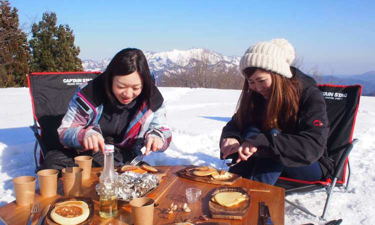 จุดเด่นของกิจกรรมนี้คือการตั้งแคมป์ทานแพนเค้กที่ทำจากแป้งข้าวเจ้าจากข้าวโคชิฮิคาริ จากโออุนุมะ (Ounuma) ราดด้วยน้ำเชื่อมเมเปิ้ล ที่นำมาต้มจนกลายเป็นน้ำเชื่อม พร้อมจิบชาอุ่น ๆ คลายความหนาวเย็น โดยมีวิวภูเขาทีโอบล้อมเอาไว้