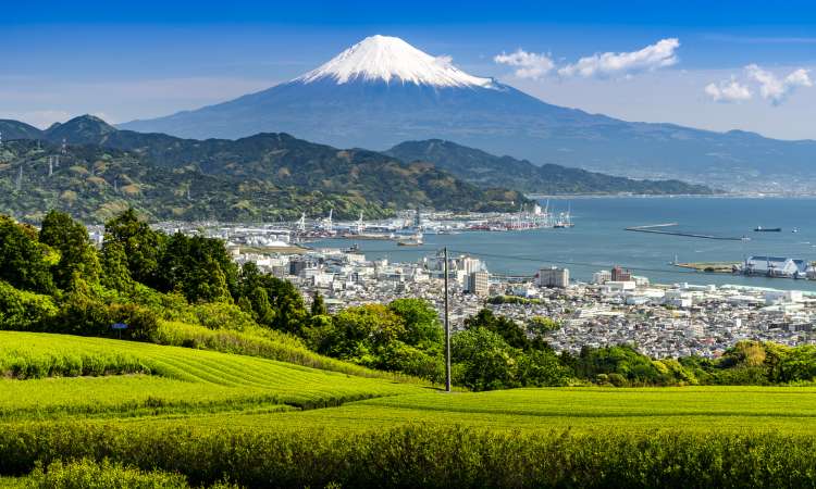 วิวภูเขาไฟฟูจิกับไร่ชาเขียว