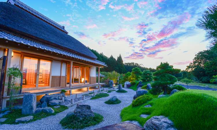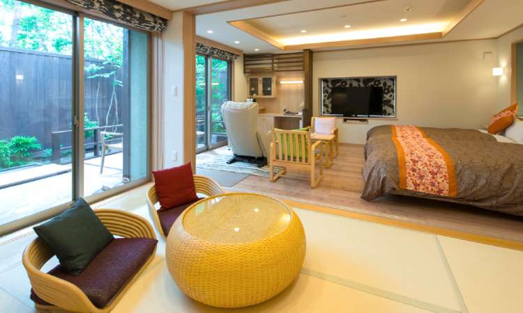 ที่ซาซายุริ อัน (Sasayuri-ann) เป็นที่พักที่เอาบ้านเก่าสไตล์ญี่ปุ่นดั้งเดิมมารีโนเวทให้กลายเป็นวิลล่า และได้รับเลือกให้ติด 1 ใน 100 บ้านญี่ปุ่นโบราณ การตกแต่งทั้งภายนอก ภายในมีความญี่ปุ่นไปทุกอณู ทั้งการมุงหลังคาด้วยหญ้า เสื่อทาทามิ และบรรยากาศสวนด้านนอกที่โอบล้อมด้วยวิวธรรมชาตินั้นเงียบสงบ และเรียบง่ายน่าดึงดูด ชวนให้แขกผู้เข้าพักรู้สึกผ่อนคลาย