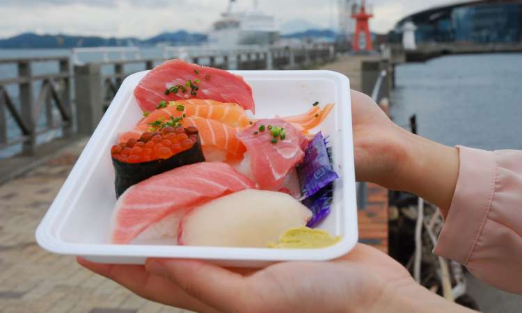 - ร้านซูชิที่ตลาดปลา มีร้านขายซูชิให้เลือกหลายระดับ มีความสดใหม่จากท้องทะเลโดยตรง