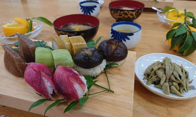 นอกจากนี้ยังมีซูชิมังสวิรัติแบบดั้งเดิมหลายรูปแบบ เช่น อุเมะชิโสะมากิซึ่งเป็นมากิซูชิไส้ใบงาและพลัมเค็ม และยังมีซาชิมิเป็นอาหารที่มักจะเกี่ยวข้องกับซูชิและเสิร์ฟที่ร้านอาหารซูชิ แต่ซาชิมินั้นไม่ใช่ซูชิ จานซาชิมิประกอบไปด้วยปลาดิบที่สดใหม่โดยไม่มีข้าว เพื่อให้ได้ลิ้มรสอาหารที่เป็นธรรมชาติอย่างแท้จริง