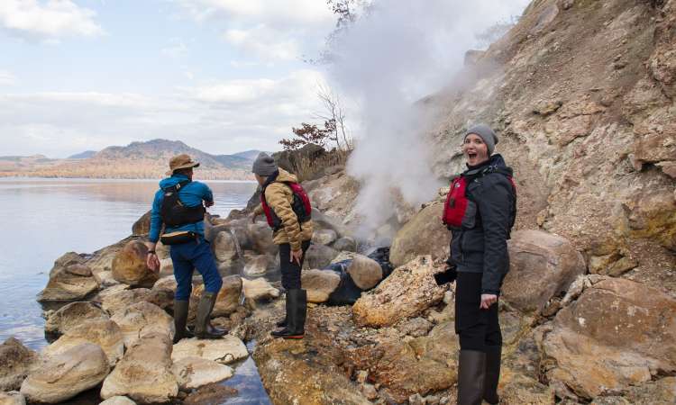 แม้ว่าจะมี เส้นทางเดินชมใบไม้เปลี่ยนสี บนคาบสมุทรวาโกโตะ (Wakoto) จะสวยในระดับที่ไม่ควรพลาดแล้ว แต่ทิวทัศน์จากผืนน้ำก็จะมอบประสบการณ์ที่แตกต่างและสวยงามในอีกรูปแบบหนึ่ง ที่ไม่เหมือนกันอย่างแน่นนอน และยิ่งในช่วงใบไม้เปลี่ยนสี ทะเลสาบคุชชะโระ (Lake Kussharo) ก็จะเป็นสีฟ้าโคบอลต์เข้มทำให้การพายเรือน่าหลงใหลเป็นยิ่งหนัก