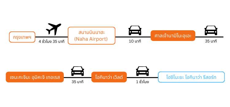 มีสายการบินตรงจาก กรุงเทพฯ สู่โอกินาว่า ใช้เวลาประมาณ 4 ชั่วโมง 30 นาที
