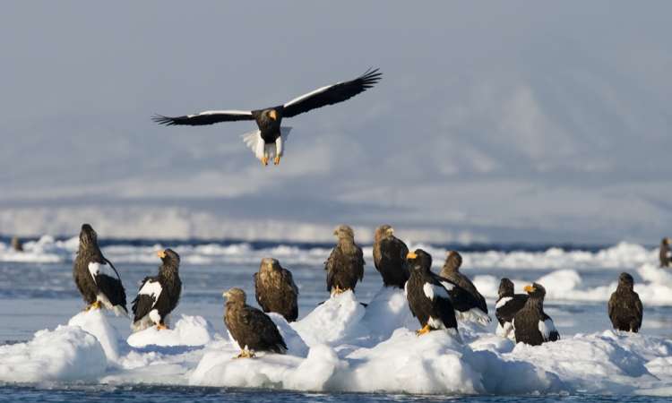 ล่องเรือชมฝูงนกอินทรีบนธารน้ำแข็ง (Bird Watching Cruising) , ฮอกไกโด (Hokkaido)