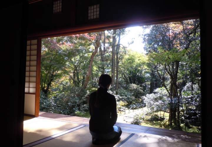 ในฤดูใบไม้เปลี่ยนสวนภายในวัดจะถูกแต่งแต้มไปด้วยสีส้มแดงสดใส