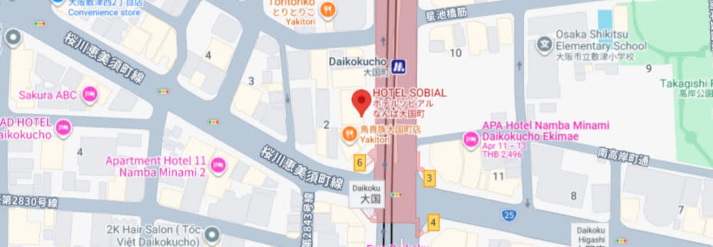 | ที่อยู่ | Hotel Sobial Namba Daikokucho 2-2-5,Shikitsunishi, Naniwa-ku, Osaka, Osaka |