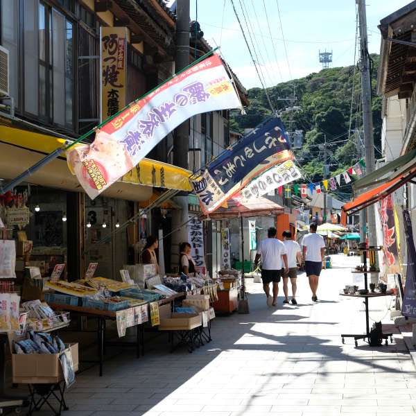 ร้านอาหาร เอบิ โนะ มิยากาวะ (Ebi No Miyagawa) เป็นร้านอาหารที่จำหน่ายกุ้งลายเสือ (คุรุมะ-เอบิ) ที่เพาะเลี้ยงในทะเลอามาคุสะที่สามารถกินได้ตลอดทั้งปี เพลิดเพลินกับกุ้งลายเสือสดๆ ในหลากหลายเมนูกุ้ง เช่น กุ้งซาชิมิ ที่มีรสหวานและเนื้อสัมผัสเหนียวนุ่ม , กุ้งย่าง , กุ้งทอด และไฮไลท์เกลือสูตรพิเศษจากทางร้านที่มีให้ซื้อกลับบาน