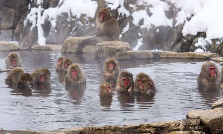 ฝูงลิงป่าเหล่านี้จึงต้องลงแช่อนเซ็นเพื่ออบอุ่นร่างกายจากฤดูหนาวอันโหดร้าย ภาพน่ารักๆ ของลิงแช่อนเซ็น และภาพของแม่ลิงกำลังลูบเนื้อลูบตัวลูกลิงท่ามกลางไอร้อนจากอนเซ็นจะทำให้คุณอยากยกกล้องขึ้นมาถ่ายเก็บไว้โดยไม่รู้ตัวเลยทีเดียว ลิงที่นี่มีนิสัยเรียบร้อยไม่ดุร้าย แต่เพื่อความปลอดภัยควรระวังไม่ไปสัมผัสโดนตัว ไม่จ้องตา และไม่นำของกินติดตัวไปจะดีกว่า