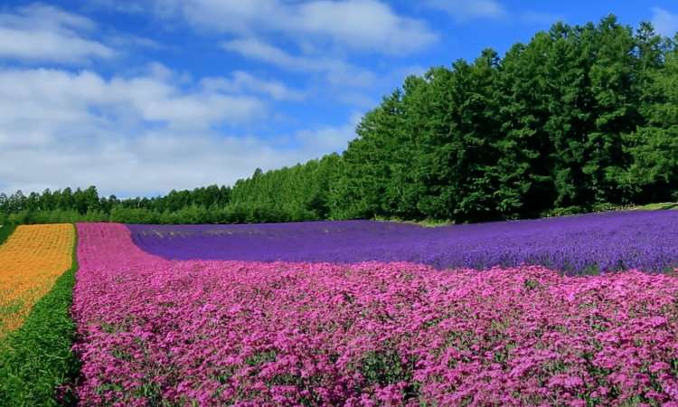 ฟาร์ม โทมิตะ เป็นสวนดอกไม้ขนาดใหญ่ในฮอกไกโด จุดเด่นอยู่ที่ทุ่งดอกลาเวนเดอร์สีม่วงบานสะพรั่งพร้อมส่งกลิ่นหอมไปทั่วเนินเขาตลอดเดือนกรกฎาคม และยังมีแปลงดอกไม้อื่น ๆ หลากสีนานาพันธุ์ผลิบานหมุนเวียนสลับเปลี่ยนกันไปตลอดฤดูใบไม้ผลิ และฤดูร้อน เป็นอีกหนึ่งจุดถ่ายภาพยอดนิยมเวลามาเที่ยวฮอกไกโด