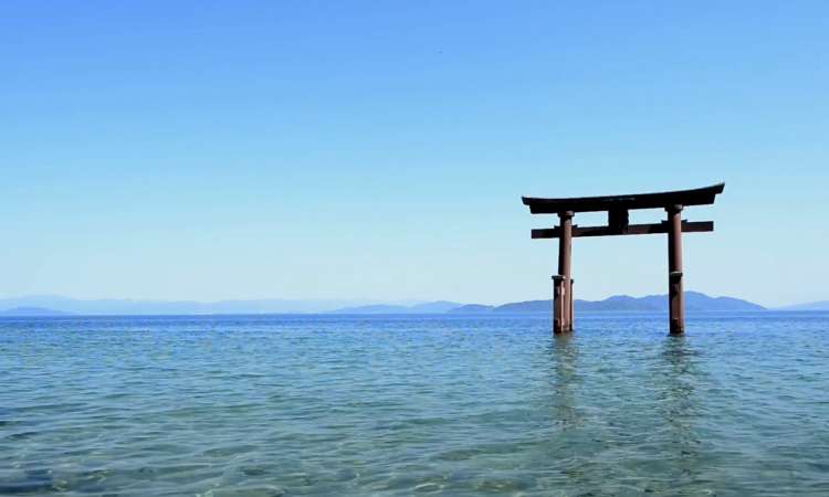 ศาลเจ้าชิราฮิเงะ ในจังหวัดชิกะ โดดเด่นด้วยเสาโทริอิสีแดงที่ตั้งตระหง่านอยู่กลางทะเลสาบบิวะ (Lake Biwa) นับเป็นภูมิทัศน์ที่งดงามมาก เชื่อกันว่าศาลเจ้าแห่งนี้เป็นที่สถิตของเทพเจ้าแห่งความมีอายุยืนยาว จึงเป็นที่นิยมในการมาขอพร และมีชื่อเสียงว่าเป็นจุดเสริมพลังชีวิต (Power Spot) อีกด้วย