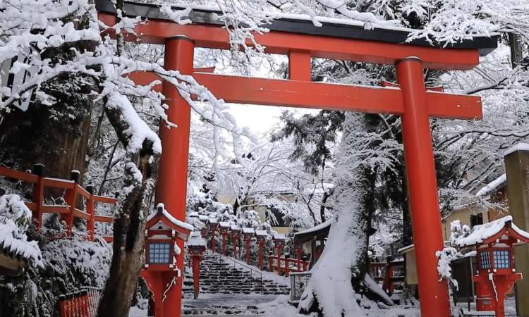 ศาลเจ้าคิฟุเนะ เป็นจุดเสริมพลังชีวิตยอดนิยม รวมทั้งยังเป็นจุดถ่ายรูปที่มีชื่อเสียงอีกแห่งหนึ่งของเกียวโต ในช่วงฤดูหนาว ภาพหิมะสีขาวโพลนตัดกับเสาโทริอิสีรวมทั้งโคมสีแดงแบบญี่ปุ่นที่เรียงรายตามสองข้างทางบันใดหินช่างน่าประทับใจ!