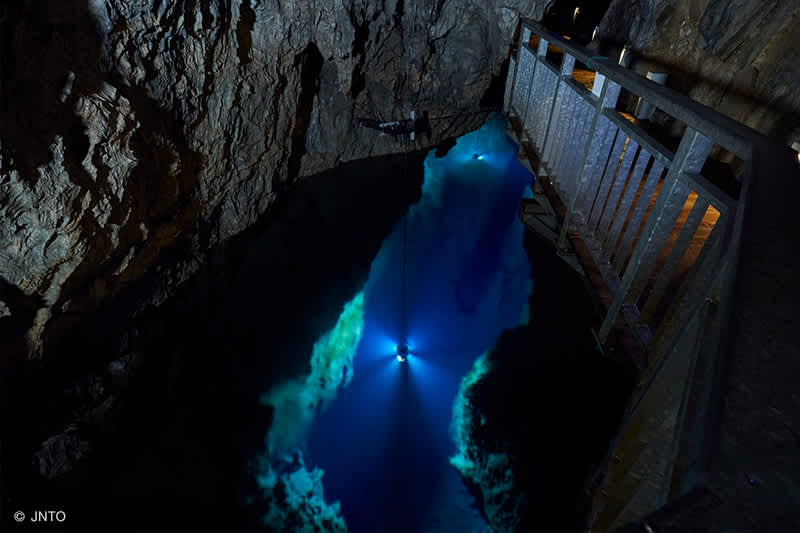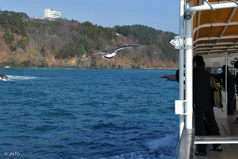 นอกจากนี้ยังสามารถเพลินเพลินกับการให้อาหารนกนางนวลหางดำที่บินลงมาที่เรือโดยการล่อด้วยขนมปังที่มีขายอยู่บนเรือหรือจะเลือกคอร์สล่องเรือชมวิวโจโดงาฮามะ (Blue Cave Cruise) เป็นเรือขนาดเล็ก ใช้เวลา 20 นาที เริ่มออกเดินทางจาก Jodogahama Marine house ได้ใกล้ชิดกับเกาะหินที่ตั้งอยู่ตรงข้ามชายหาด เข้าชมถ้ำสีฟ้า (Ao-no-dokutsu) เป็นถ้ำขนาดเล็กที่มีน้ำทะเลสีฟ้าโคบอลต์ และแวะให้อาหารนกนางนวลที่บินตามเรือมาได้อีกด้วย