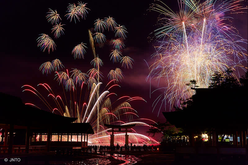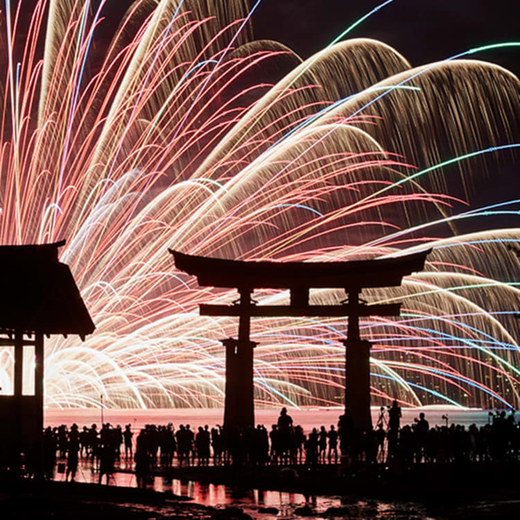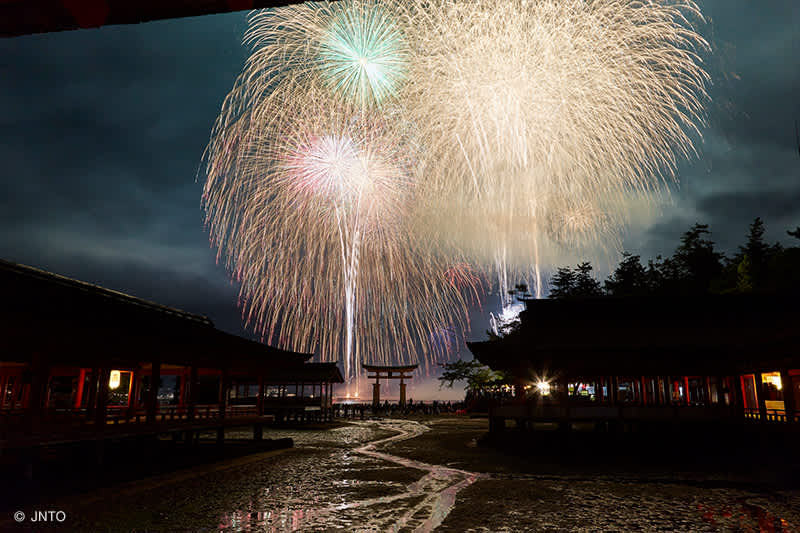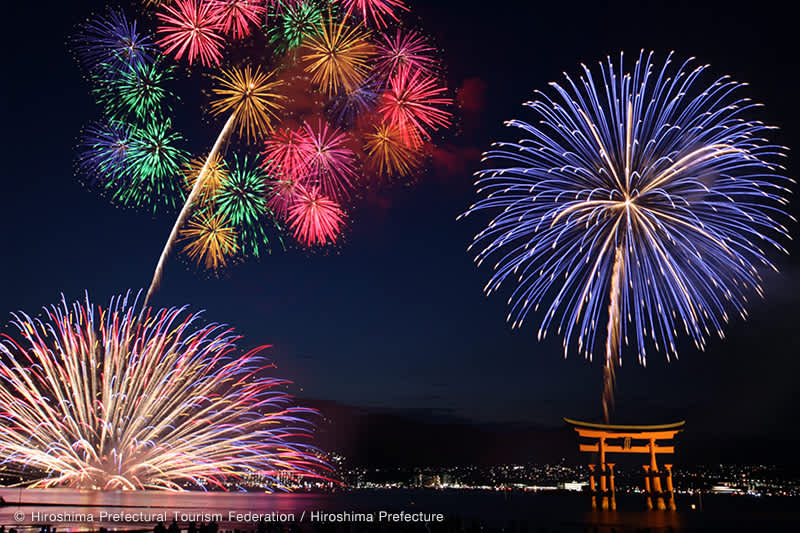 เทศกาลดอกไม้ไฟกลางน้ำแห่งมิยะจิมะ (Miyajima Water Fireworks Festival) คือหนึ่งในเทศกาลใหญ่ที่สร้างสีสันให้กับฤดูร้อนของเกาะมิยะจิมะ (Miyajima Island) ซึ่งเป็นแหล่งท่องเที่ยวยอดนิยมของจังหวัดฮิโรชิมะ (Hiroshima) จัดขึ้นเป็นประจำในเดือนสิงหาคมของทุกปี และมีนักท่องเที่ยวเดินทางมาชมมากถึงปีละ 300,000 กว่าคน โดยมีการแสดงดอกไม้ไฟมากถึง 5,000 นัด หนึ่งในนั้นมีการแสดงดอกไม้ไฟกลางน้ำ (Water Fireworks) สุดงดงามถึง 200 นัด โดยจะจัดไว้บนเรือแล้วลอยลำอยู่กลางทะเล เมื่อถึงเวลาจุดดอกไฟให้เจ้าหน้าที่ก็ทำการบังคับจุดดอกไม้พุ่งแฉลบเฉียงลงไปในทะเล จากนั้นดอกไม้ไฟก็จะระเบิดเมื่ออยู่ใต้น้ำ แตกตัวเป็นประกายไฟสวยงามโผล่พ้นผิวน้ำเพียงครึ่งเดียว สถานที่จัดจะอยู่หลังประตูศาลเจ้าอิทสึคุชิมะ (Itsukushima Shrine) ซึ่งดอกไม้ไฟที่ระเบิดปะทุขึ้นจากท้องทะเลยิ่งทำให้ประตูโทริอิสีแดงที่ตั้งอยู่กลางทะเลนี้ทวีความงามขึ้นจนดูราวกับภาพในความฝันเลยทีเดียว