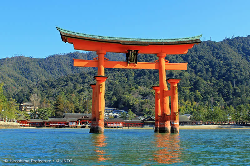 เกาะมิยะจิมะ (Miyajima Island) ในจังหวัดฮิโรชิมะ (Hiroshima) มีสัญลักษณ์อันโด่งดังคือประตูโทริอิสีแดงสดที่ตั้งตระหง่านอยู่กลางทะเล ด้วยบรรยากาศที่ดูเร้นลับชวนพิศวง ทำให้สามารถดึงดูดผู้คนให้มาเยี่ยมชมเป็นจำนวนมาก บนเกาะมิยะจิมะมีสถานที่น่าสนใจหลายแห่ง เช่น เที่ยวนมัสการศาลเจ้าอิทสึคุชิมะ (Itsukushima Shrine), พิพิธภัณฑ์สัตว์น้ำมิยะจิมะ (Miyajima Public Aquarium) และยังสามารถไปชิมอาหารท้องถิ่นชื่อดังอย่างหอยนางรมย่างและโมมิจิมันจู (ขนมเค้กพื้นเมืองรูปทรงใบเมเปิ้ล ภายในสอดไส้ชนิดต่าง ๆ) ที่ถนนสายช้อปปิ้งโอโมเตะซันโด (Miyajima Omotesando Shopping Street)