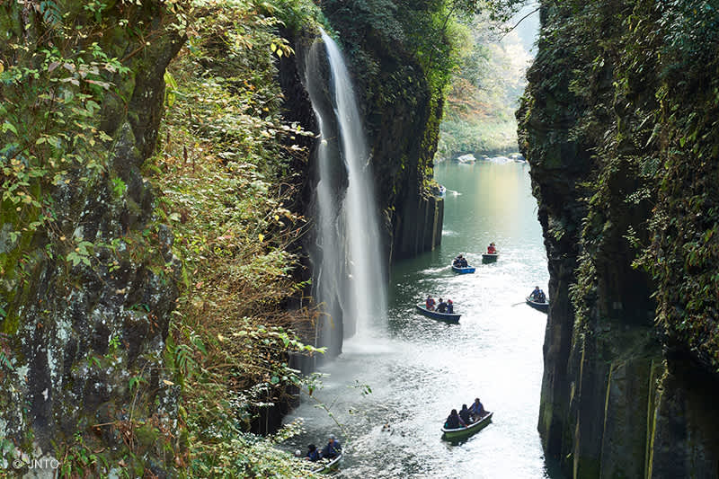 กิจกรรมที่แนะนำ คือการชมความงามของหุบเขาทะคะจิโฮะ (Takachiho Gorge) โดยการพายเรือผ่านน้ำตกมะนะอิโนทาคิ (Manainotaki) ที่มีความสูงถึง 17 เมตร ซึ่งมีความงามที่โดดเด่นและเปรียบเสมือนเป็นสัญลักษณ์ของหุบเขาทะคะจิโฮะแห่งนี้ เมื่อพายเรือเข้าไปใกล้บริเวณฐานน้ำตกจนกระทั่งเปียกปอนไปด้วยน้ำที่กระเด็นมาจากของน้ำตกแล้วก็จะได้รู้สึกถึงความอลังการน่าตื่นตาตื่นใจมากขึ้นอีกเป็นทวีคูณ