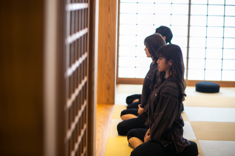 在寺院門前的「永平寺 親禪旅館 柏樹關」是提供禪修體驗及精進料理的現代化旅館。辦理入住後,即可參加坐禪與抄經等體驗,度過不同於日常的靜謐時光。隔天早上還能參與早晨修行,與約140位僧侶和修行僧一起焚香和誦經,感受難得的平靜。所有的體驗皆會有永平寺認證的親禪禮賓員在旁協助,每位旅客都能安心參與。