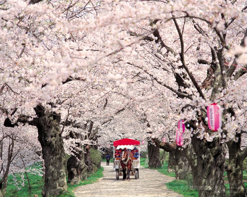 依偎在岩手北上川旁長達兩萬公里的櫻花林道,是漫步、是遊船或是乘坐馬車,各式角度盡收櫻花之美