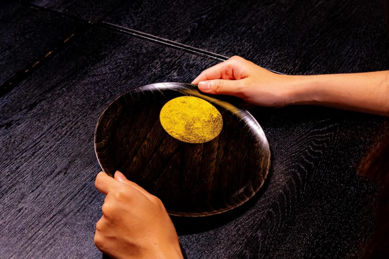 遊客可挑戰以金箔描繪日本俳句中春季季語「朧月」的意境,其意指春夜中籠罩著薄霧與霞靄的月色。體驗時使用當地職人以木地挽技法製成的實木盤,再透過擦漆與金箔營造朦朧圓月的唯美氛圍。若需中文或英文解說,請事前預約。