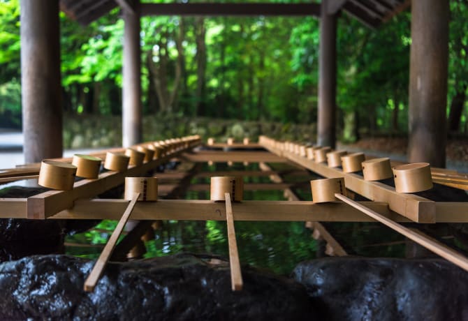在距離伊勢神宮內宮不遠處,就是傳說中的天照大神居所。天照大神是皇室的祖先,也是神道教的主神。位在內宮入口的宇治橋,相傳連接了神界與人間,而流經下方的五十鈴川可以淨化身心。