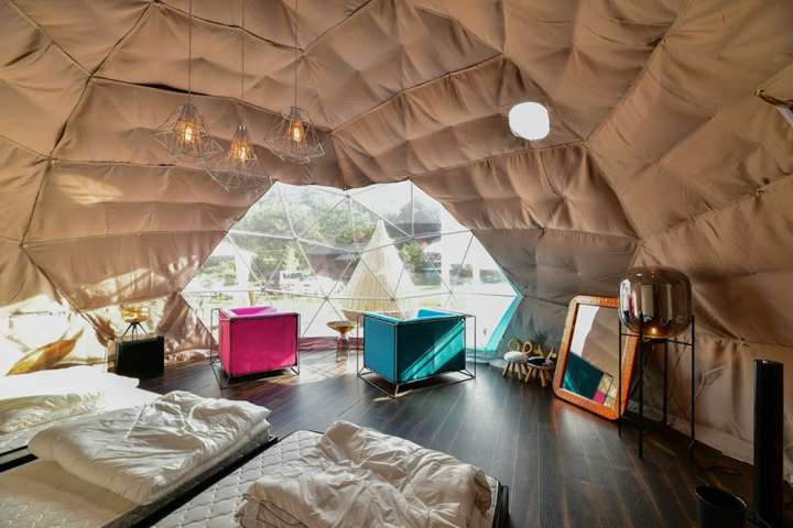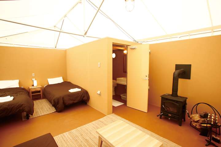 以「delight&luxury」為主軸的戶外品牌「deluxs」所直營的奢華露營設施。從門口穿越過2頭正在吵架中的等身大巨型暴龍後進入設施,除了導入最新的EV電動車,還能享受三溫暖、按摩浴缸、游泳池等僅只於此才有的高級奢華體驗。由於每間的外觀或內裝主題都不同,無論造訪幾次都能有不同的全新感受。此外,皆備有冷暖氣、冰箱、微波爐等,能夠相當舒適的度過悠閒的時光。