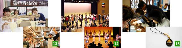 【14】在仲夏之夜,日本各地會舉行各種盂蘭盆舞活動,而阿波舞是發祥於德島縣的盂蘭盆舞,約有四百年的歷史。配合三味線及太鼓、鉦鼓的節奏,開始跳起豪邁的男舞及精髓的女舞。「阿波舞會館」每天都有現場表演的粟舞,還可和舞者一同體驗樂趣。