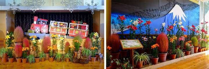 「Smile」是花迴廊2021年度的主題,遠景的鳥取大山與近景的花花草草相融合,這個佈置真是「花迴廊印象」的最佳代表。
