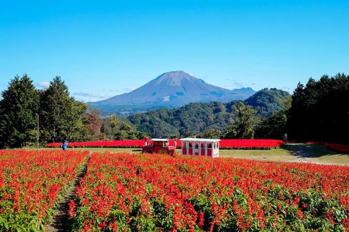 終於來到了花迴廊人氣NO.1的景點~花之丘,花之丘的花田會隨著季節而更換,春天為三色堇、野罌粟,夏天為萬壽菊,而我們所到訪的秋天,就是「一串紅」了。以巍峨雄壯的鳥取大山為背景,搭配四季更迭的廣闊花海,無論什麼季節前來都美得令人屏息。