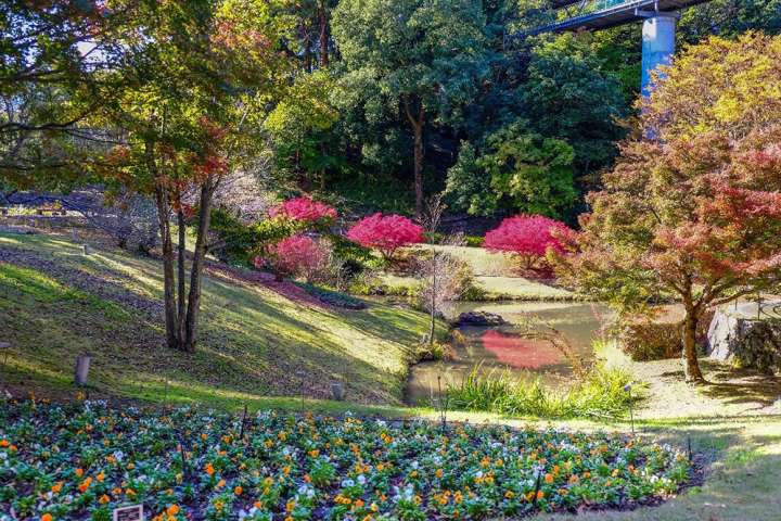 在花迴廊,除了絢麗的花朵外,層次豐富的紅葉也絲毫不遜色呢!最後,放上園方提供的其他季節美照供大家一同欣賞。