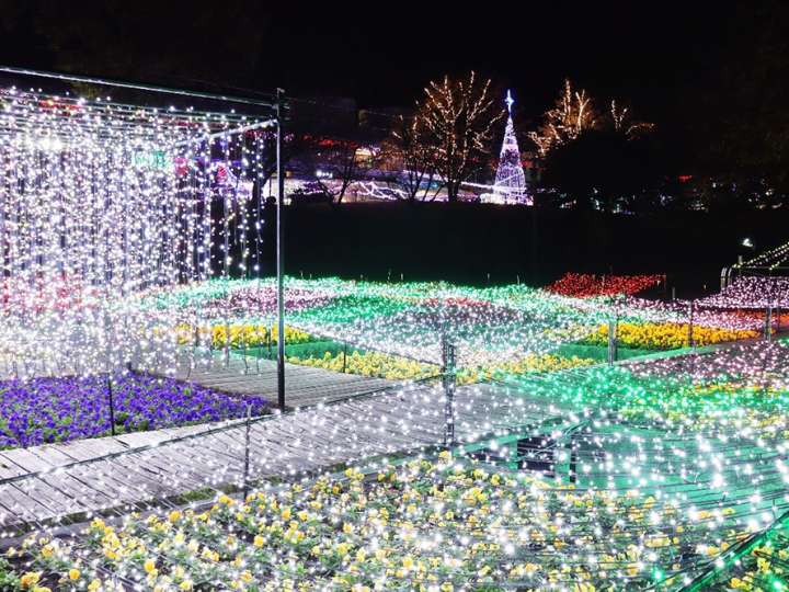 花迴廊於每年的11月中旬至1月初,會開放夜間庭園,舉辦璀璨的花卉燈飾祭典。筆者造訪花迴廊時,正值燈飾活動前夕,四處架著燈線與支架,雖然白天看起來有點兒突兀,但到了夜晚就會搖身一變,成為絢麗浪漫的閃爍星光!