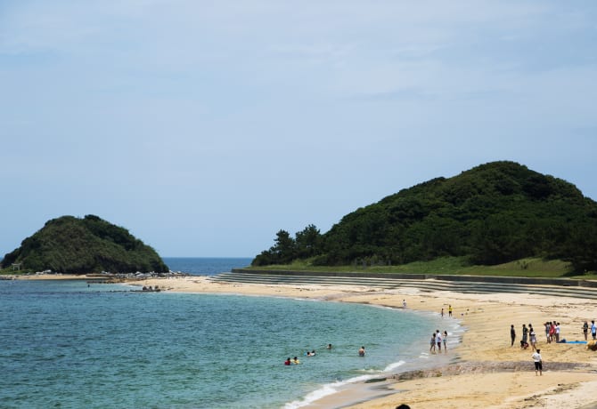 Từ khu vực Seaside Momochi, bạn có thể nhìn thấy cả Shikanoshima và Công viên ven biển Uminonakamichi. Shikanoshima kết nối với đất liền bằng đường bộ hoặc có thể đến được bằng cách đi phà 20 phút từ khu phức hợp Marizon. Cứ mỗi giờ lại có một chuyến phà chạy. Tàu hỏa cũng chạy từ Hakata đến Ga Saitozaki trên đảo trên tuyến JR Kagoshima và Kashii.