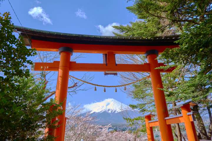 Từ lối vào Omotesando đi theo con đường có đèn lồng hai bên sẽ tới được cổng torii màu đỏ son - biểu tượng của đền Arakura Fuji Sengen. Khung cảnh núi Phú Sĩ cùng sự thay đổi bốn mùa xuân hạ thu đông từ cổng torii đẹp đến mức khiến bất cứ ai nhìn thấy cũng phải nín thở. Không chỉ người dân trong nước mà rất nhiều du khách nước ngoài khi tới Yamanashi đều chọn đền Arakura Fuji Sengen là một trong những điểm đến nhất định phải có trong hành trình.
