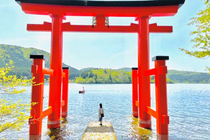 Cổng torii nổi trên hồ Ashi có tên là Heiwa no torii, nghĩa là cổng torii của hoà bình. Sở dĩ có tên như vậy là bởi cổng được xây dựng vào năm 1952 khi Nhật Bản kí kết hiệp ước hoà bình. Hiện nay, đây là địa điểm nổi tiếng trên các mạng xã hội chia sẻ hình ảnh. Từ bảo tàng nghệ thuật Narukawa nhìn ra phía hồ Ashi, cổng torii xây dựng cách đây 70 năm này giống như đang nổi trên mặt hồ xanh ngắt, xa xa là quang cảnh núi Phú Sĩ tạo nên phong cảnh mang tính biểu tượng cho Hakone.