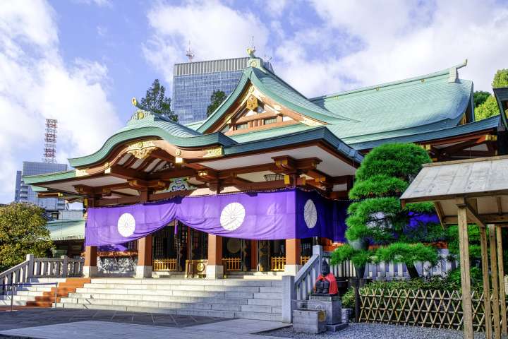 Đền Hie là ngôi đền linh thiêng được gia đình Tokugawa tôn kính đặc biệt như vị thần hộ mệnh của thành Edo xưa. Khu trung tâm của đền (Goshaden) được xây dựng lại năm 1958 thay thế cho kiến trúc đã bị thiêu rụi hoàn toàn vào năm 1945.