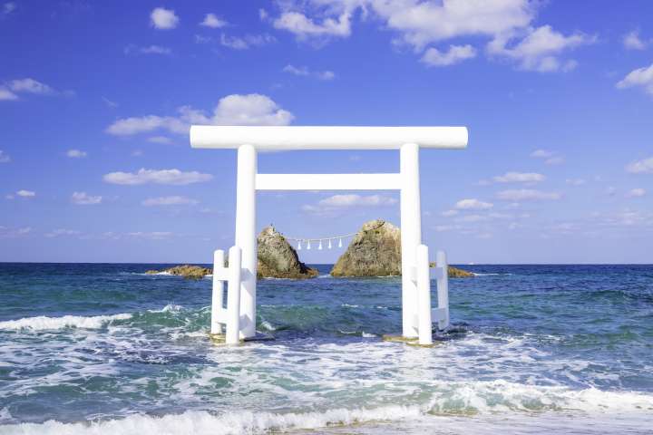 Tại Futamigaura - nơi thờ phụng của đền Sakurai Uranomiya - có một cánh cổng torii màu trắng trên biển. Đây là vật linh thiêng của ngôi đền, được xây dựng vào năm 1968 với ý nghĩa rằng từ đây trở đi là nơi ở của các vị thần. Khi xây dựng cổng torii này, người ta đã cân nhắc chọn màu trắng tinh khiết để làm hài hoà với cảnh quan thiên nhiên, tạo nên khung cảnh vừa uy nghi vừa tuyệt mĩ. Đặc biệt cảnh hoàng hôn tại đây chính là 1 trong 100 cảnh hoàng hôn đẹp nhất Nhật Bản.