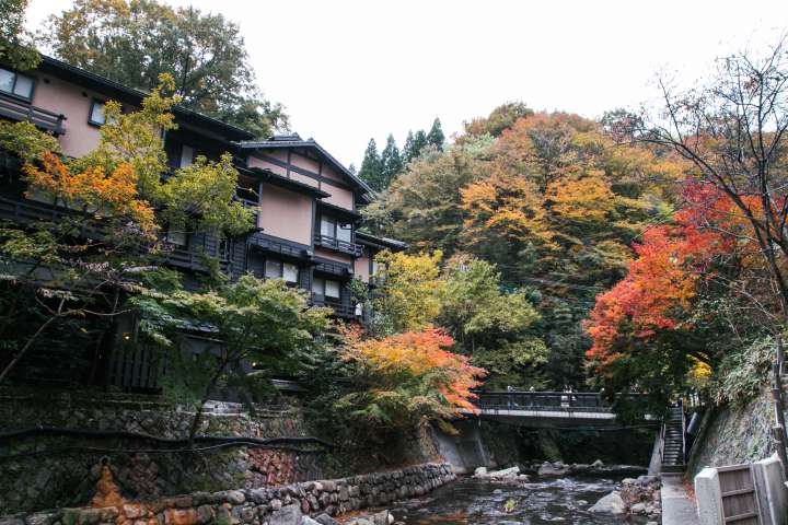 Vào mùa đông khi tuyết phủ kín lối đi và để lại dấu tích trên các mái nhà, ánh sáng ấm áp toả ra từ những lữ quán bên sông khiến không khí càng thêm phần lãng mạn. Thư giãn trong làn nước ấm và thưởng thức nồi lẩu với nguyên liệu địa phương là trải nghiệm mà bạn không nên bỏ lỡ khi nghỉ trọ tại đây.