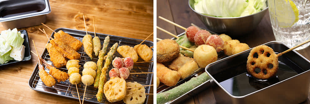 Nhắc đến văn hóa ẩm thực địa phương tại Osaka, không thể thiếu món xiên que lăn bột Kushikatsu. Các nguyên liệu tươi ngon như thịt, cá, rau củ, tôm,... sẽ lần lượt được xiên vào tăm tre, sau đó tẩm qua một lớp vụn bánh mì giòn kiểu Nhật và chiên xù; khi thưởng thức sẽ được phục vụ kèm với nước sốt đậm đà và bắp cải sống.