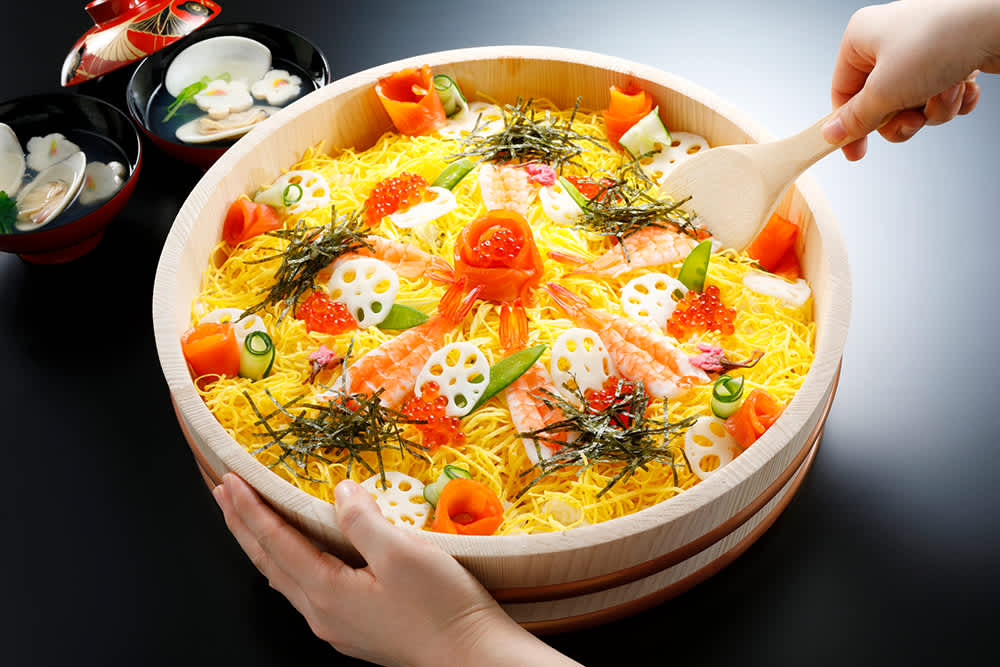 Bên cạnh những loại trái cây nổi tiếng như nho xanh và đào, thì tỉnh Okayama còn được biết đến với món Okayama Barazushi hay còn được gọi với cái tên Bizen Barazushi, một loại sushi cao cấp với những nguyên liệu địa phương như các loại rau tươi và các loại hải sản phong phú được đánh bắt từ vùng biển nội địa Seto. Và tùy thuộc theo mùa mà món ăn này sẽ được chế biến với các nguyên liệu khác nhau.