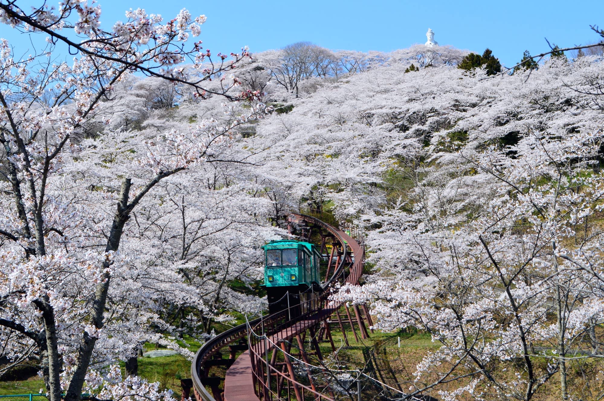 Từ đỉnh núi, bạn có thể ngắm nhìn toàn cảnh công viên từ đài quan sát. Nhiều du khách địa phương cũng đến cầu nguyện với tượng Bồ Tát Quan Âm Funaoka cao 24 mét tại đây. Gương mặt hiền hòa của bức tượng hòa hợp lạ thường với biển hoa anh đào bên dưới.