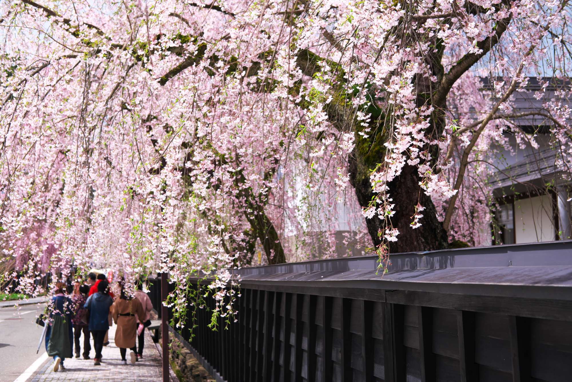 Và khung cảnh cổ kính nơi đây sẽ càng mộng mơ hơn khi những hàng cây Shidare-Zakura (anh đào rủ) ở Kakunodate bung nở vào cuối tháng 4. Trong vô vàn các cây anh đào ở đây, có đến khoảng 162 cây đã được công nhận là Di sản thiên nhiên. Sắc hồng anh đào cùng với màu gỗ đen của những dinh thự samurai tạo nên nét đối lập không thể tìm thấy ở bất cứ đâu. Phố Bukeyashiki-doori chính là nơi nhiều du khách ghé thăm nhất để trải nghiệm khung cảnh tuyệt đẹp này.