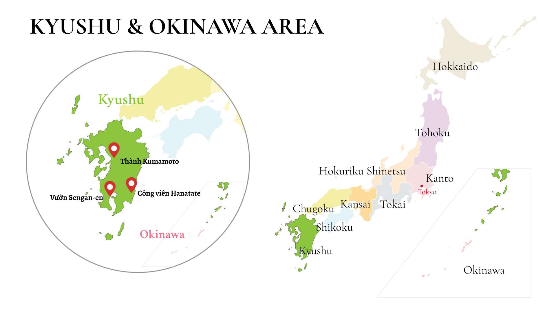 *Khu vực Kyushu bao gồm các tỉnh: Fukuoka, Saga, Nagasaki, Oita, Kumamoto, Miyazaki, Kagoshima